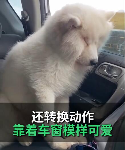 视频中,一只狗子坐在汽车后座昏昏欲睡,靠着车窗模样十分可爱。